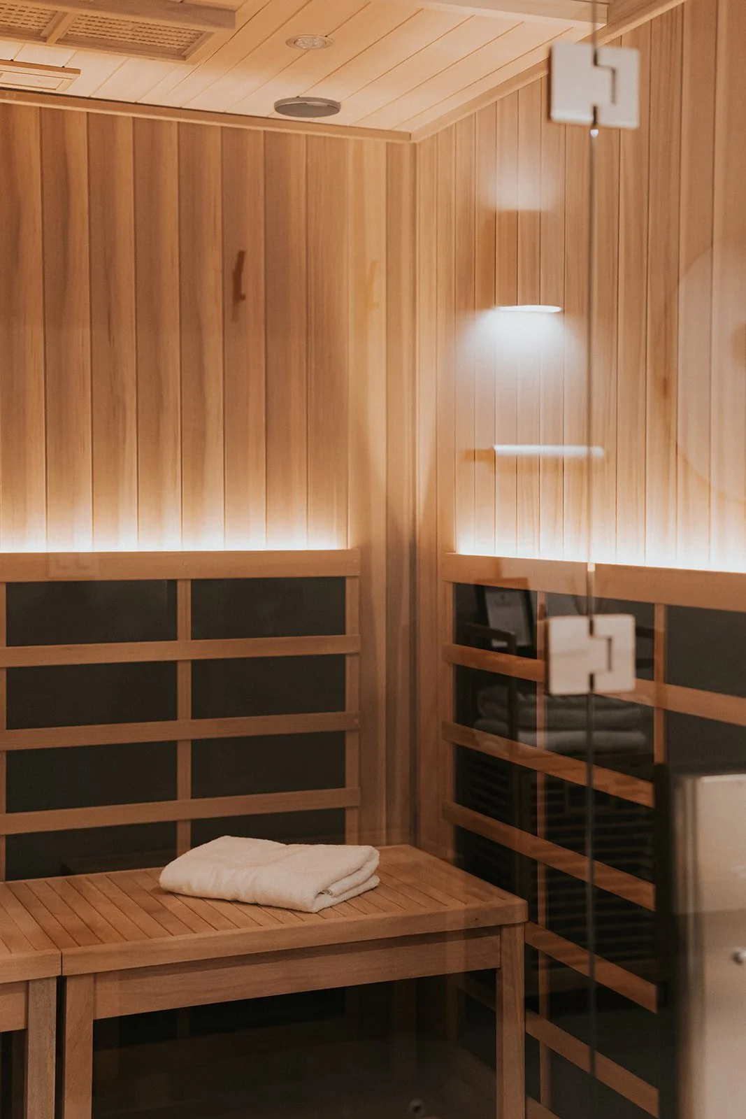 Our private suite features an infrared sauna and rinse shower. Enjoy a private session or reserve with a partner or up to 3 friends. Choose from 20- or 40-minute sessions.